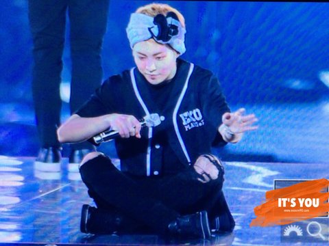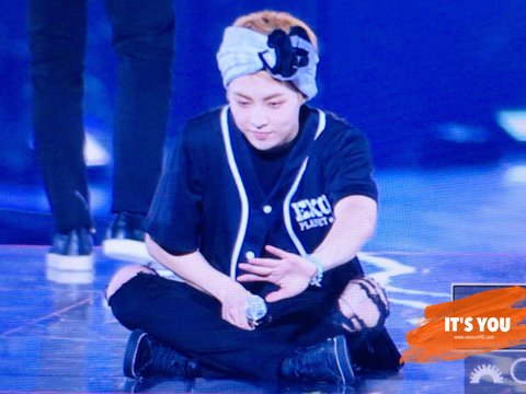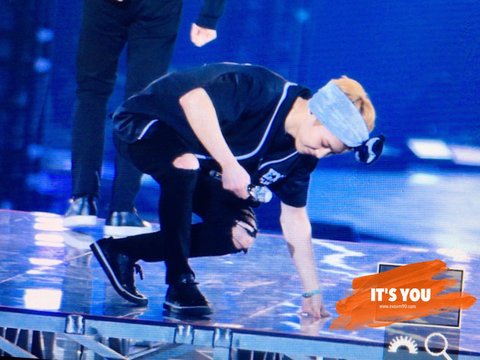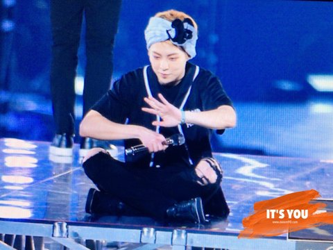 밑에있는 팬들한테 인사해줄려고 앉는 중이래 역시 다정한 요정님>.<
