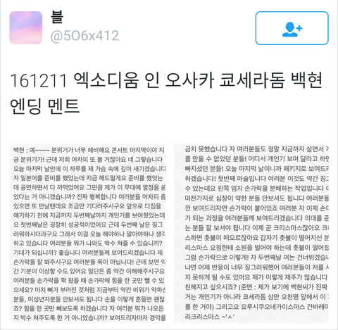 161211 오사카 쿄세라돔 백현 엔딩 멘트