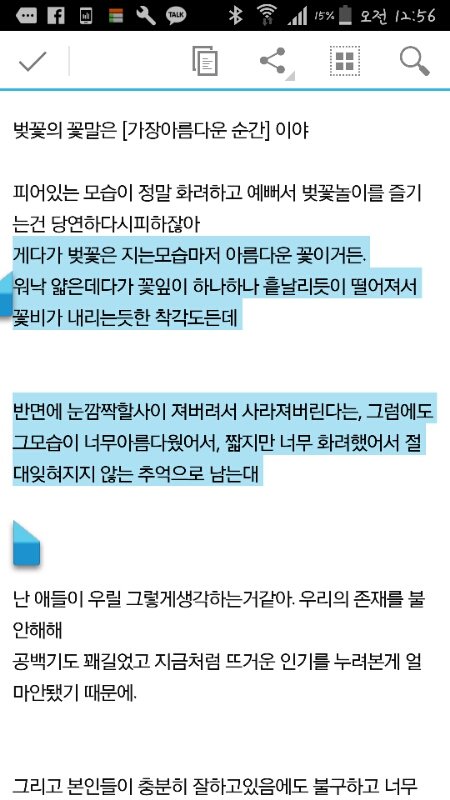 아마 애들이 우릴 그렇게생각하는거같아. 확 피었다가 져버릴까봐 사라져버릴까봐, 추억으로만 남게될까봐 두려워하는것같아
