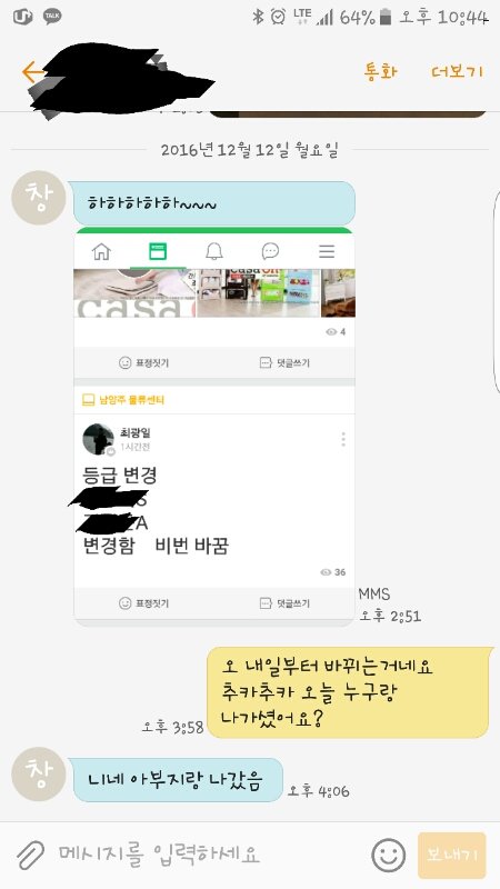 추카한다라고 보내면서 오늘은 누구랑 나갔냐