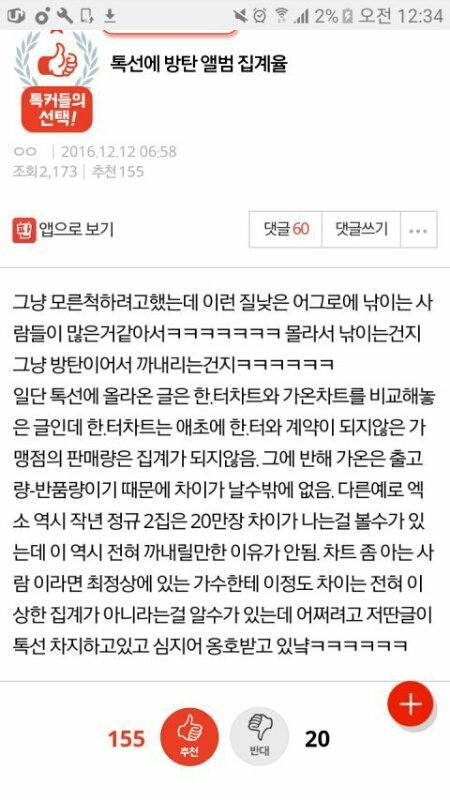 방탄에 대해 또 의혹글이 올라온거 억울한거 인정하나 조금만 더 조심해서 글을 읽고 확실하지 않은거에 추천 베플 안만들었으면 좋겠음