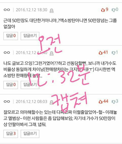 우리가 저기에 일찍 안달려갔으면 엑소 20만장 차이난다고 낙인찍힐뻔함ㅋㅋㅋㅋ....