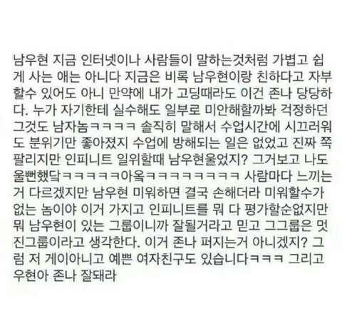 학창시절에 인기많으면 샛길로빠지기쉬운데..진짜 인피니트가 잘되는이유가있는듯 멤버하나하나 인성이 모나지않았어