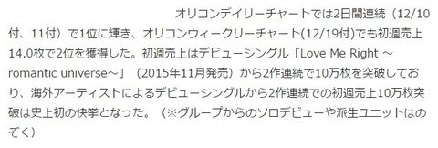 해외 아티스트의 데뷔 싱글부터 2작 연속 첫 주 판매량 10만 장 돌파는 사상 첫 쾌거