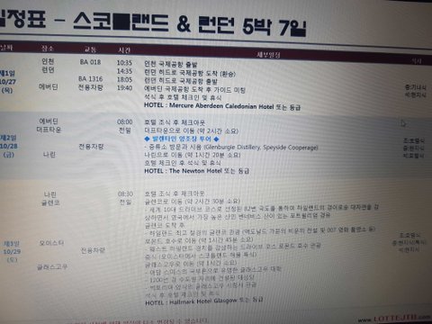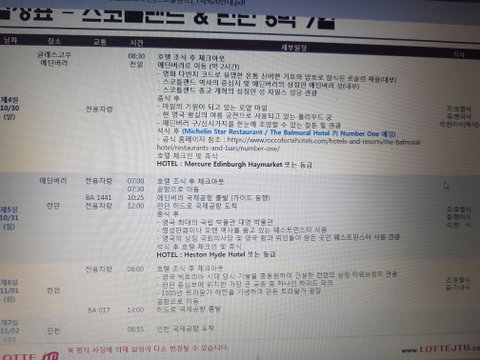 1일 일정 런던출발,에버딘도착편이 18:05분이였는데 런던도착하니 16:00로 변경되어있었음