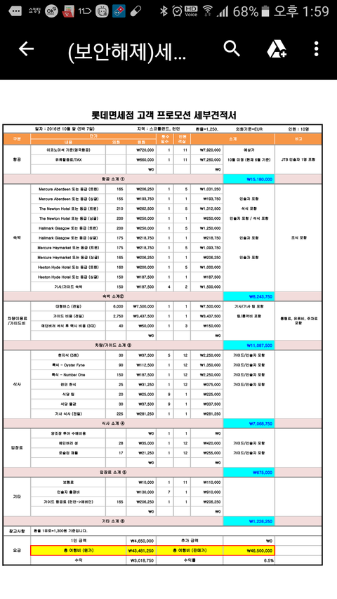 견적서는 출발전 견적이라고 일정에 있었다고 합니다
