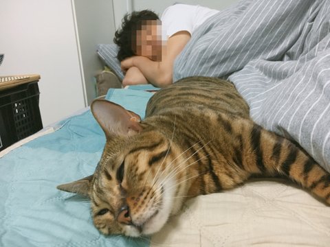 늘상 침대에 올라와서는 이불들어달라고 냐옹냐옹.