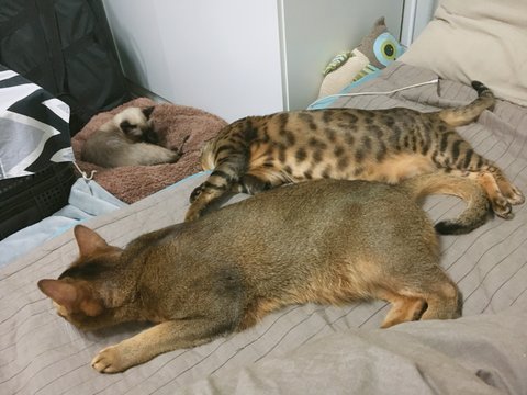 뜨끈뜨끈 녹아내리는 두녀석과 쿠션독차지하고있는 첫째 ㅋㅋ