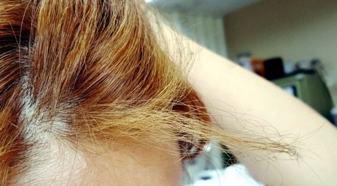 파마한지 9개월 후였고, 염색한지 3개월 후였어요. 탈색 한거 아니구요. 색이 너무 진하게 나온겁니다.