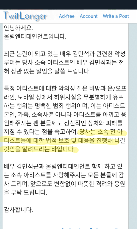 울림 ㄱ11ㅣ11ㅁ 민11111석님 루머 고소하시는 김에 애들이랑 오빠그룹분들도 같이 하나봐 우리 짹만 봐도 엄청나던데 따자!