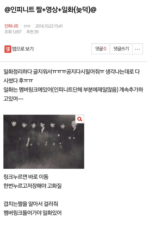 오랜만에 공지에 있는 잉피 짤 모음 글 드가봤는데 멤버별로 계속 업뎃했었구나 ㅋㅋ 사랑해 토기 쪼옵♡