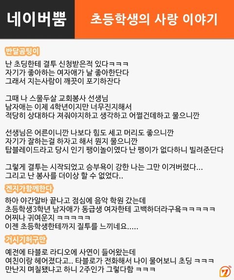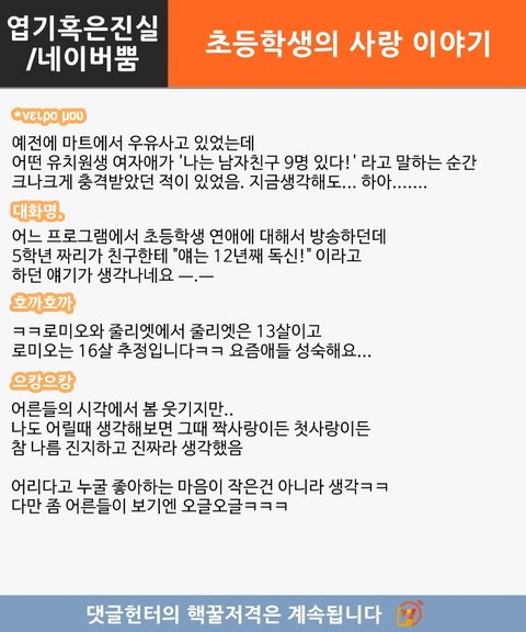 [출처] 초등학생의 사랑 이야기 外 <댓글헌터 82>|작성자 오피디