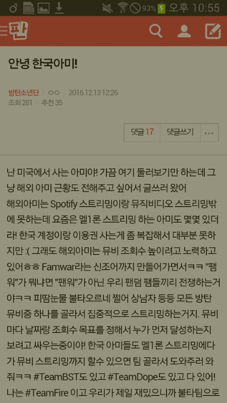 해외 아미들이 이렇게 열심히 해 주는데 우리도 가만히 있으면 안되겠지? 스밍 화이팅 뮤밍 화이팅!! 이삐들 모두 다 화이팅하자!