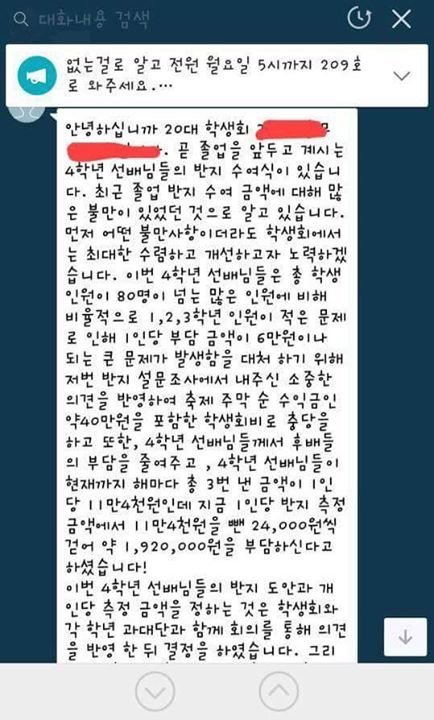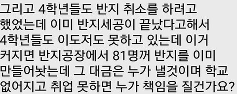 "니네가 뭔데 우리가 졸업반지 끊는걸 강요하냐(뭔데 돈을 안내냐"