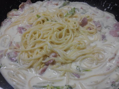 우유랑 생크림으로 먼저 소스 만든후에 면이랑 버무렸어요. 소스많은거 좋아하시는분 추천합니당~!