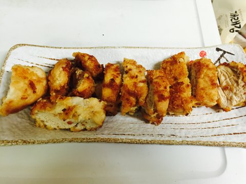 집에 남아있는 닭가슴살로 만든 치킨까스 입니다.