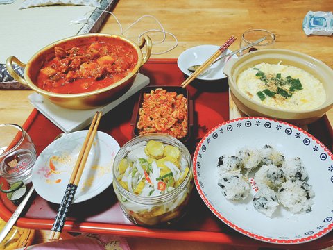 친한언니가 놀러온다하여 만든 닭볶음탕, 계란찜, 주먹밥 세트!ㅋㅋㅋ 정말 맛있었어요ㅠㅠ술이 술술