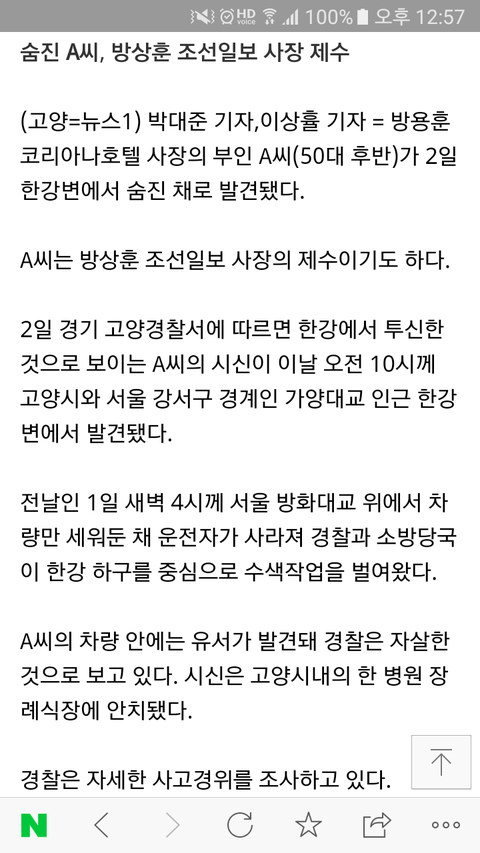 그렇담 결론은 차를 본인이 방화대교에 두고 걸어가서 가양대교에서 투신자살한 셈인데