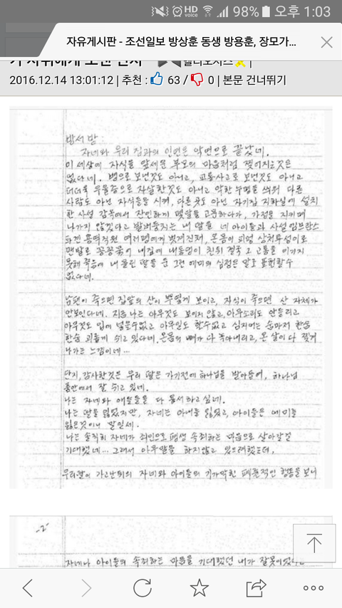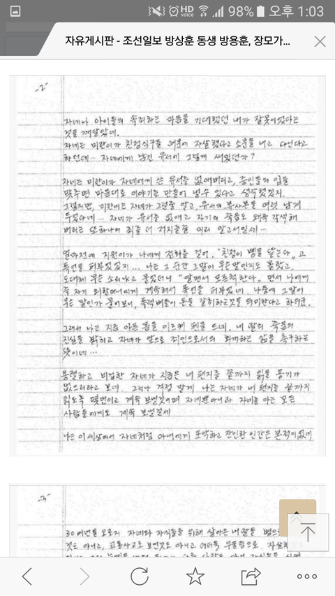 죽음으로 내몰은 사위 방용훈과 자신의 손주들을 용서하고 싶다는 것임....