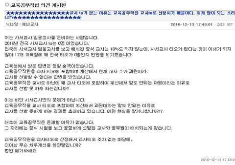 위에서 읽은 교육공무노조단체의 글을 보면 그분들은 공무원이 최종목적이라고 노골적으로 명시해놓았습니다