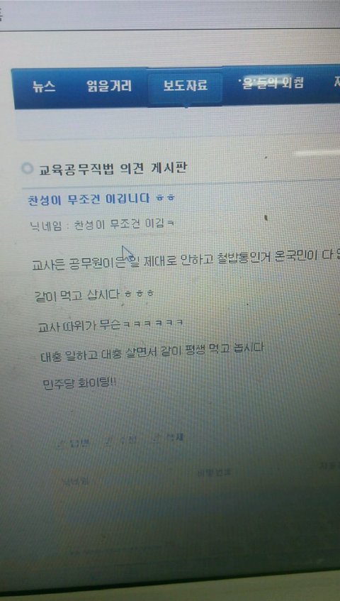 을지로 게시판에 실무원들이 찬성하는 글을 도배하고 있습니다.
