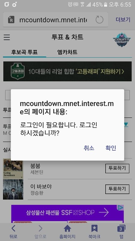 엠.카 홈페이지 실시간투표하려는데 안돼....