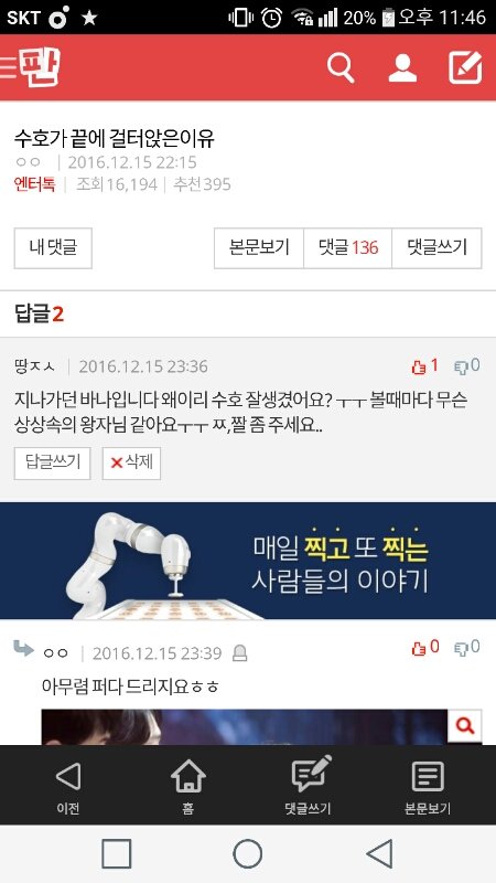 전 수호분..?군..? 을 좋아하는 지나가던 바나입니다! 엔터에서 수호분의 글이 올라왔길래.. 짤 좀 구하려고 왔습니다! 밑에 사진은 제가 단 댓글이구요.. ㅇ,예쁘게 봐주세요?!