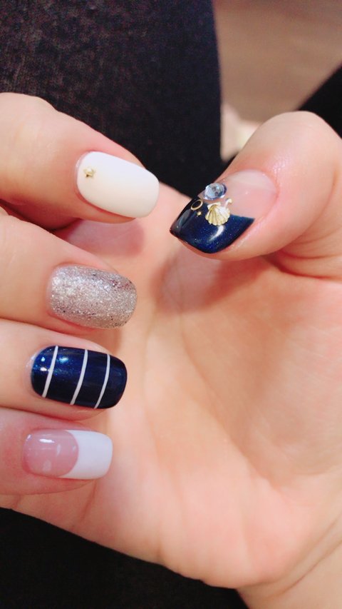 페디 전체를 남색만 하면 보이질 않는다 너무 어둡다 하시길래 그럼 흰색이랑 섞고 싶다 그랬더니 은색으로 가야한다고 그러셔서 잘 아시겠거니해서 맡겼습니다