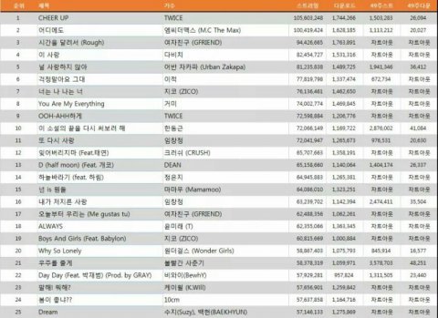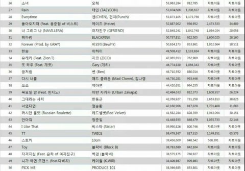 진짜 대세 맞음? "진짜 대세" 한동근,여자친구,트와이스,지코,헤이즈같은 사람들은 다 들어가있는데 50위안에도 없는 방탄소년단이 "진짜 대세"라고 생각함?