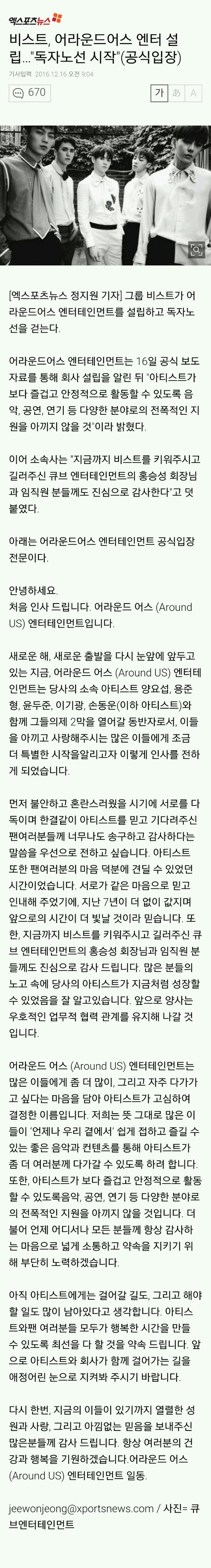 비스트 어라운드어스 엔터 설립함 ㅠㅠㅠ