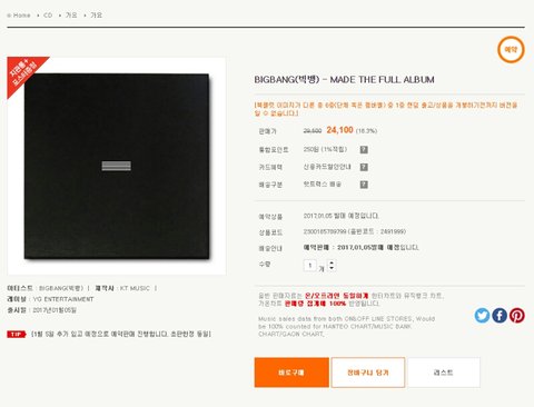 (핫트랙스, 신나라, 리스, 애플, 알라딘, 예스24, 하물며 yg shop까지 모두 품절)
