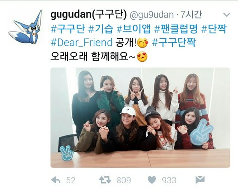 그러한 친구라는 뜻으로 팬들과ㄱㄱ단이 단짝같은 사이가 되자는의미 라고 적혀있어요..