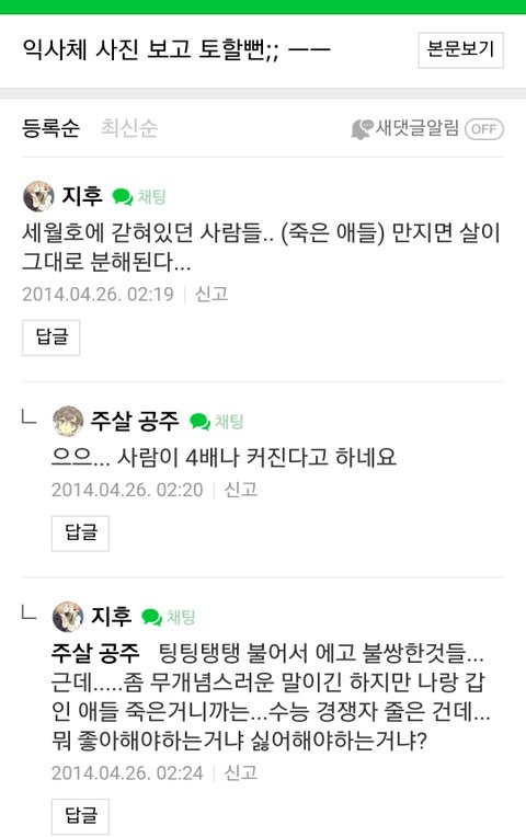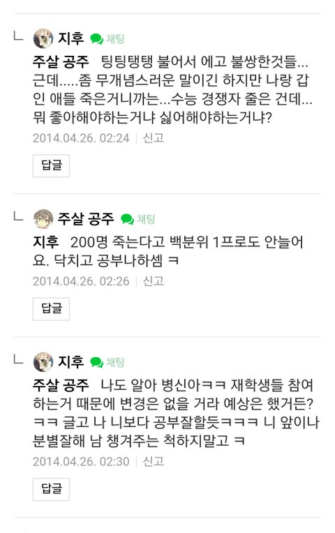 세월호희생자보고 수능경쟁자 줄었다고 좋아하는 노답ㅋ