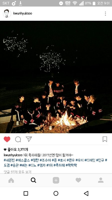 호박고구마님 인별에 울애들 1위 축하글 올라왔어!
