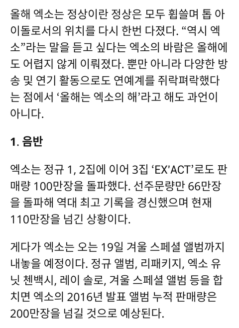 "엑소가 곧 역사다" 명불허전 톱 아이돌 활동내역