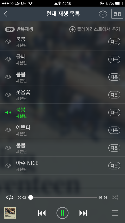 오늘 음악중간애들의상