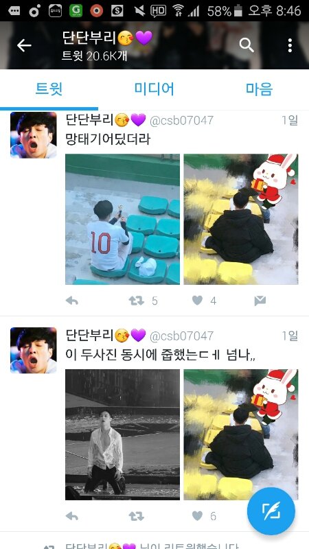 프사도 그렇고 밥먹자나 상두는 여긴데 ㄹㅇ 열심히 덕질함;; 뭐야 게다가 유명한 사모님들이 팔로함