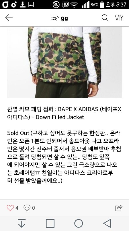 야 찬열이인별패딩 개쩌는데 ?