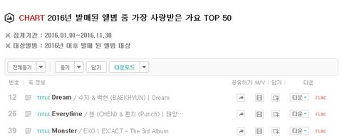 11월 30일까지 집계된 곡 50중 3개ㅊㅊㅊㅊ