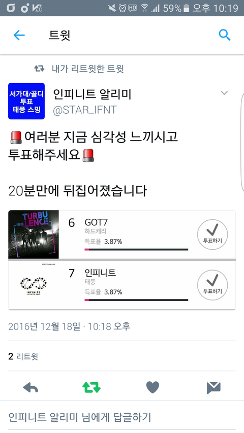 서가대 20분만에 역전당했어 제발 투표해줘ㅠㅠ