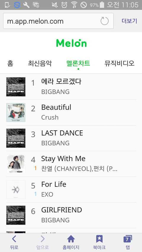 남돌치고 선빵한거지 빅뱅은 음원이 너무쎈데 왜 비교질이야 이번 엑소스페셜앨범이 진입 5만6천으로한거 못봄?남돌들이 정규로내도 진입5만6천나오면 대단하다고 하는데 엑소는 스페셜앨범으로 높게나와도 지랄들이야 왜 ㅋㅋ