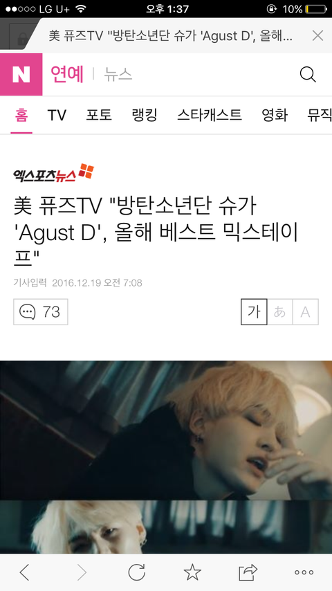 미국퓨즈TV올해의베스트믹스테이프"Agust D"