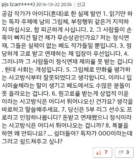 떨어진 것도 화가 날 수 있겠지만 저런 마인드와 저런 그림실력으로 데뷔한 애가 있다는 게 그게 가장 억울하다 이거지.