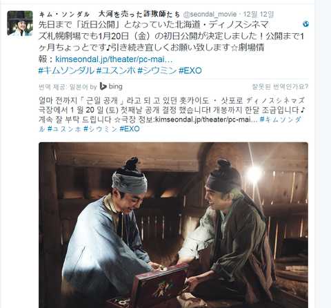 번역된 거 보니까 김선달이 일본 홋카이도랑 삿포로 극장에서 1월 20일에 개봉한대!! 이게 12일에 나왔던 소식인데 나는 지금 봤어 >.<; 아는 웅녀들도 있겠지만 기분 좋아서 올림 곧 클스마슈가 다가오는 겨울인데도 한 여름 더위를 뚫고 견이 보러 극장에 몇 번씩 가던게 생각난다 우리 견이 일본가서도 사랑 많이 받고 와!!!!