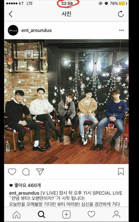 3. 비스트의 브이앱 라이브 시작시간은 10시 57분