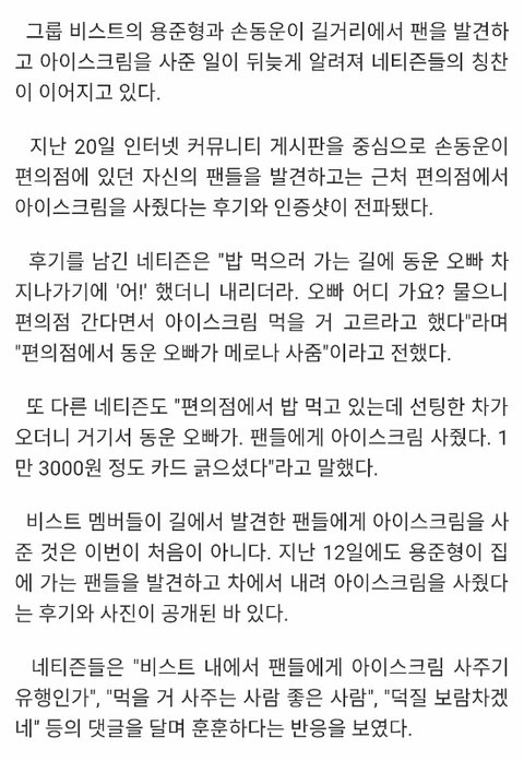 어라운드어스 공식계정에 올라온 비스트 사진 첨부합니다.