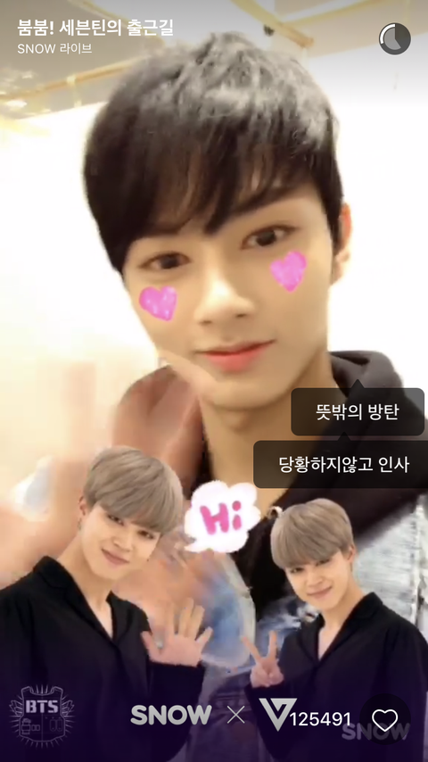 호시는 뷔 ㅋㅋㅋㅋㅋㅋㅋㅋㅋㅋㅋㅋㅋㅋㅋㅋㅋ양쪽에서 뷔가 튀어나와서 쓰담쓰담할때마다 형 안녕하세요! 형 안녕하세요! 막 이러곸ㅋㅋㅋㅋㅋㅋㅋㅋㅋㅋㅋㅋㅋ