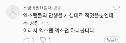 볼붉은 사춘기분들 컴백하셨고 평소에 너무 잘듣고있어서 리뷰창 가봤는데 진짜 가관이더라 ㅂㅁㄱ 해야하는건 아는데 엑소 팬코해서 ㅂㅂ이랑 볼붉은분들 까는건 기본이고 그걸 또 믿고 답글로 엑소엘까는사람들, 엑소엘이 좋은댓글써도 무조건 반대누르고 참.. 언제부터 우리가 이렇게 이미지도 안좋고 머리채잡히고 팬코도 심했는지 모르겠다 우리 무개념도 많이 거르고 있는데 도대체 어떻게 해야 우리도 이미지 조금이나마 좋아질 수 있을까 너무속상하다 (그와중에 ㅅㅁㅇㅈ은 댓으로)
