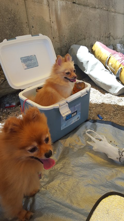 바닷가 놀러갔는데 너무 더워해서 아이스박스에 궁디 시원하게 해줌