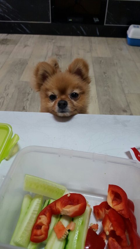 파프리카랑 오이먹는데 구걸중!